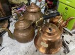 Vintage Turkish Etched Tea Pots and Brass Pitcher, Location Kitchen Vintage Turkish Etched Tea Pots and Brass Pitcher, Location Kitchen