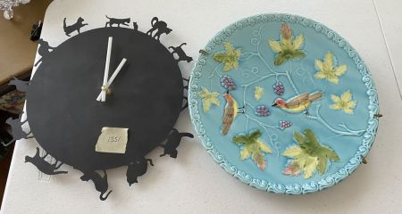1351 Porcelain Hanging Charger and Cat Metal Wall Clock