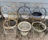6 Vintage Wrought Iron Ice Cream Chairs, used for planters 6 Vintage Wrought Iron Ice Cream Chairs, used for planters