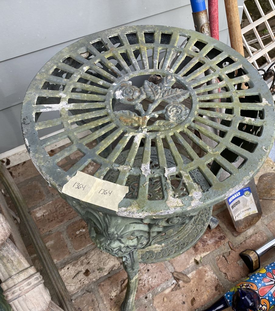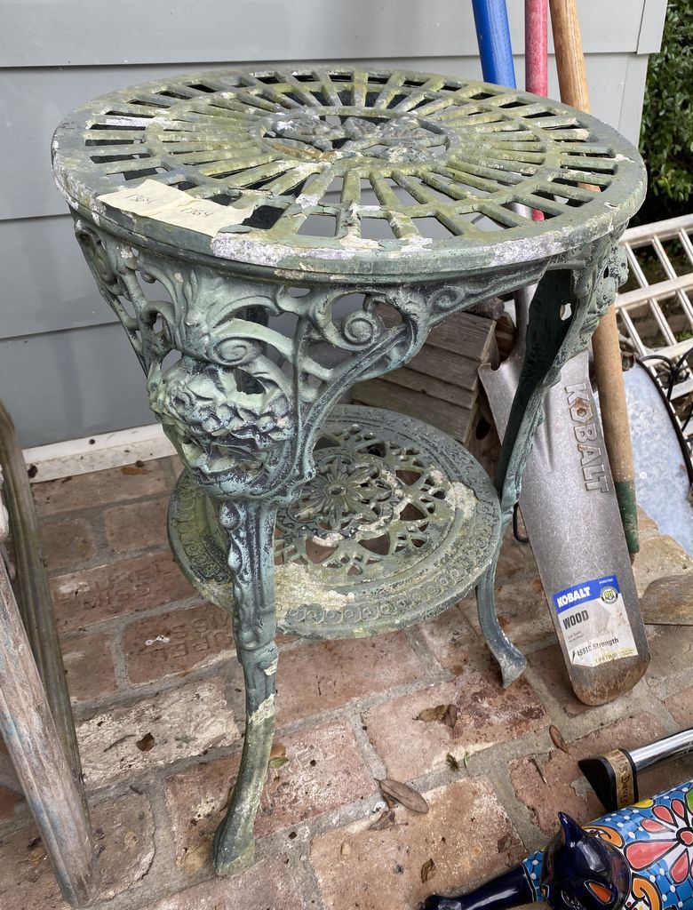 1364 Cast Metal Weathered Ornate Outdoor Side Table