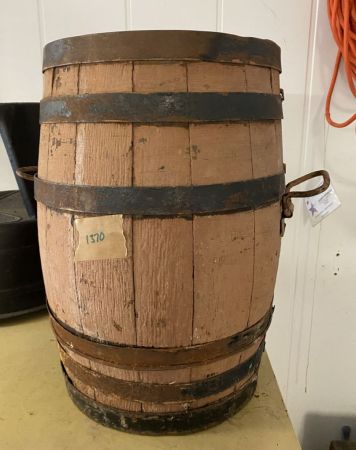 1370 Vintage Painted Wood Barrel with Iron Bands