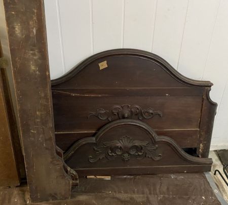Pieces of Victorian Mahogany Bed, rails, footboard, middle section of headboard, Location Garage Pieces of Victorian Mahogany Bed, rails, footboard, middle section of headboard, Location Garage