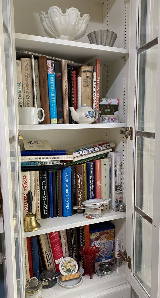 Collection of Assorted Cooking Books, includes some porcelain bowls, and cups, bell, Location Kitchen Collection of Assorted Cooking Books, includes some porcelain bowls, and cups, bell, Location Kitchen