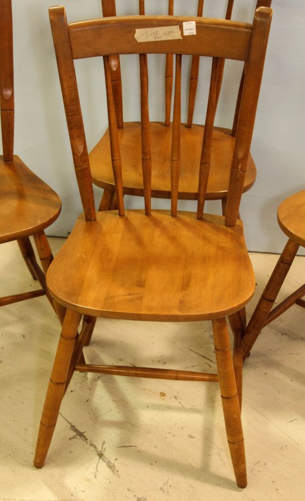 Set of four Heywood Wakefield maple side chairs with label on the bottom. Set of four Heywood Wakefield maple side chairs with label on the bottom.