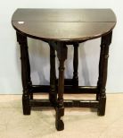 Small carved oak drop leaf table with two 9 1/2" leaves.; 10" w., 26 1/2" d., 30" h. Small carved oak drop leaf table with two 9 1/2" leaves.; 10" w., 26 1/2" d., 30" h.
