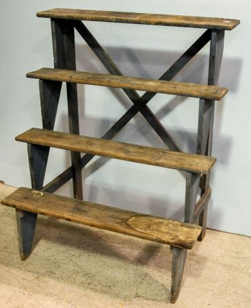 Primitive stand for crocks or jars; 37" w., 21" d., 45" h. Primitive stand for crocks or jars; 37" w., 21" d., 45" h.