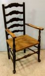 American ladder back arm chair with rush seat.; 25" w., 22" d., 43" h. American ladder back arm chair with rush seat.; 25" w., 22" d., 43" h.