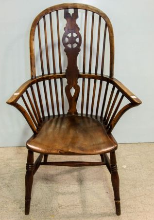 19th century Windsor arm chair; 26 1/2" w., 18" d., 41 1/2" h. 19th century Windsor arm chair; 26 1/2" w., 18" d., 41 1/2" h.