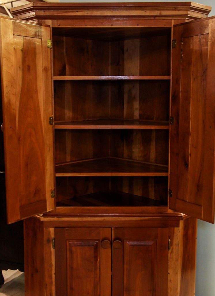 Handmade cherry two piece corner cabinet with interior shelves.; 42" w., 30" d., 79" h. Handmade cherry two piece corner cabinet with interior shelves.; 42" w., 30" d., 79" h.