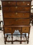 Jacobean style 19th century oak chest with bell pulls.; 39" w., 23" d., 63" h. Jacobean style 19th century oak chest with bell pulls.; 39" w., 23" d., 63" h.