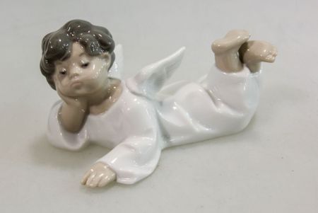 Lladro reclining angel figurine; 6" w. Lladro reclining angel figurine; 6" w.
