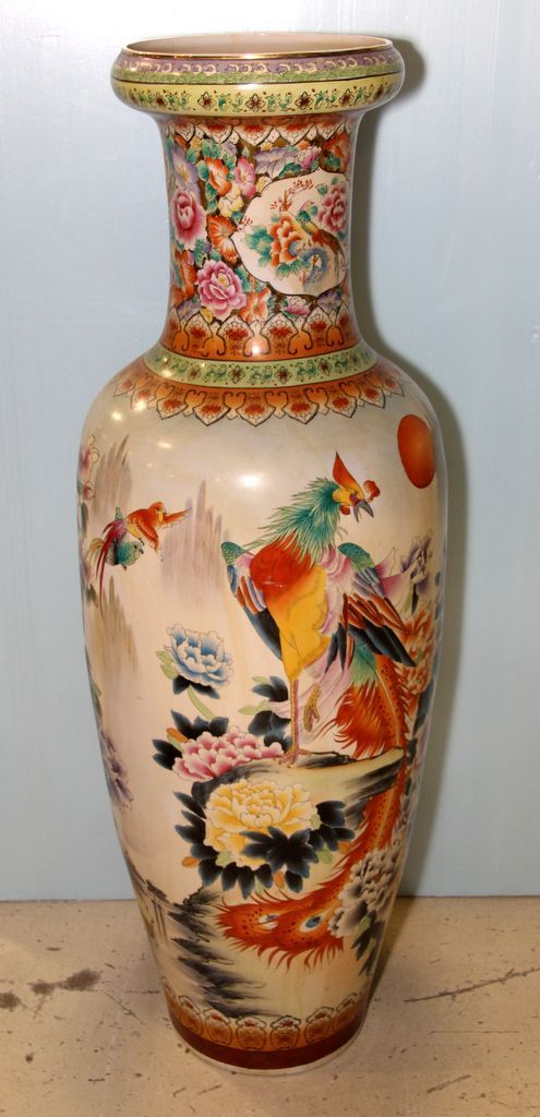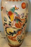 Large porcelain hand painted palace urn in the oriental motif.; 54 1/2" h., 16" dia. Large porcelain hand painted palace urn in the oriental motif.; 54 1/2" h., 16" dia.