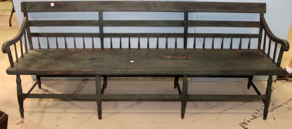 19th century original painted settee.; 87" w., 23" d., 34" h. 19th century original painted settee.; 87" w., 23" d., 34" h.