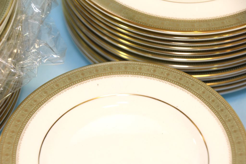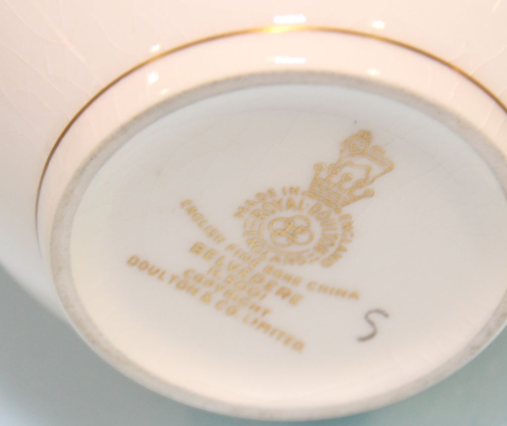 Set of Royal Doulton "Belvedere" china consisting of fifteen dinner plates, thirteen salad plates, fourteen bread/butter plates, twelve cups & twelve saucers. 66 pieces Set of Royal Doulton "Belvedere" china consisting of fifteen dinner plates, thirteen salad plates, fourteen bread/butter plates, twelve cups & twelve saucers. 66 pieces