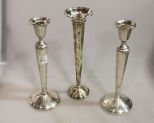 389 Pair of Launt Sterling Candlesticks & Majestic Sterling Vase