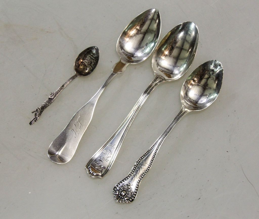 434 Three Sterling Silver Spoons & Coin Silver Spoon