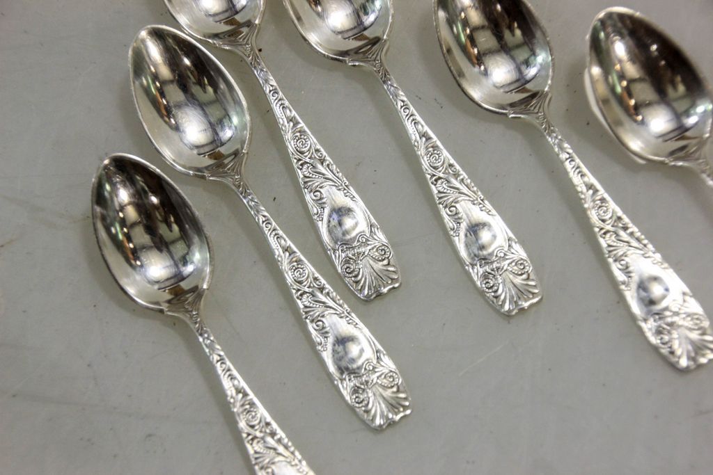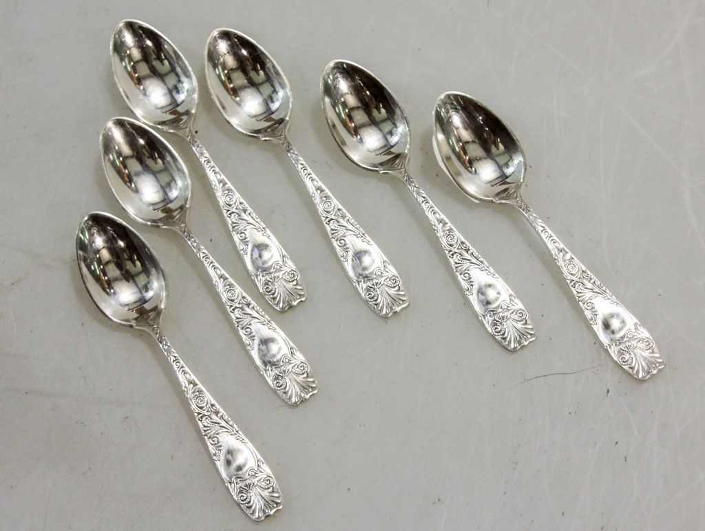 Set of six marked Gorham silver demitasse spoons, not marked sterling Set of six marked Gorham silver demitasse spoons, not marked sterling