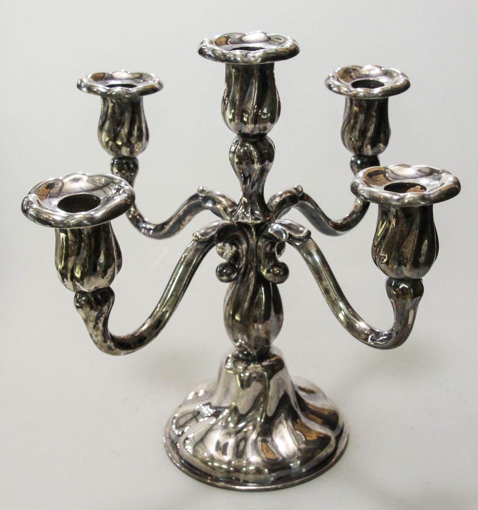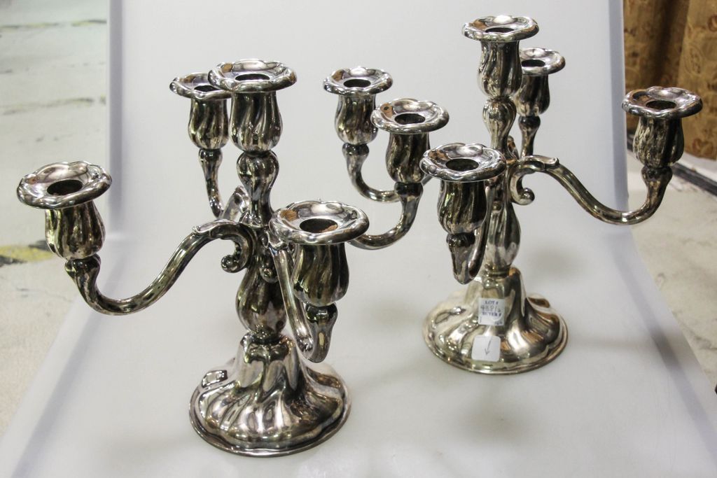Pair of German 800 silver Hugo Bohm circa 1900 candelabras; 12 1/2" dia., 12" h. Pair of German 800 silver Hugo Bohm circa 1900 candelabras; 12 1/2" dia., 12" h.
