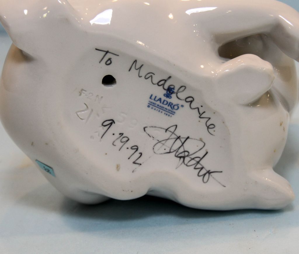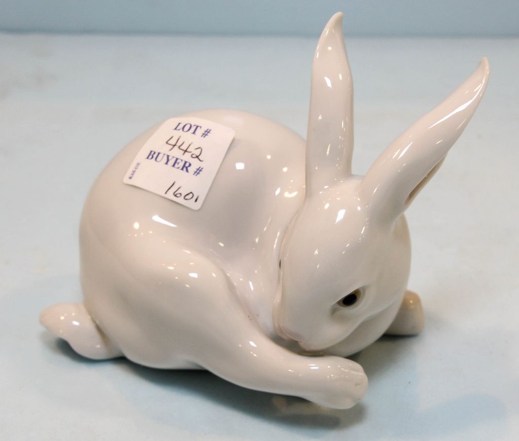Lladro preening bunny with box; 5" w., 3 1/2" h. Lladro preening bunny with box; 5" w., 3 1/2" h.
