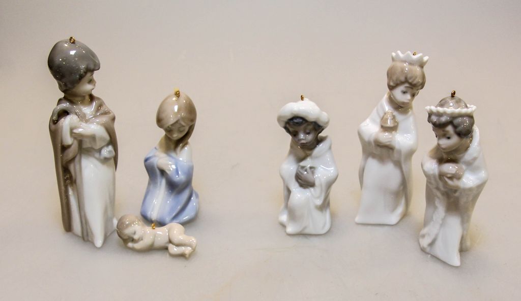 Two groups of three Lladro figurines consisting of Mini Reyes in original box 3 1/2" h. and Mini Sagrada Familia in box Two groups of three Lladro figurines consisting of Mini Reyes in original box 3 1/2" h. and Mini Sagrada Familia in box