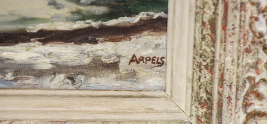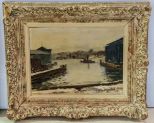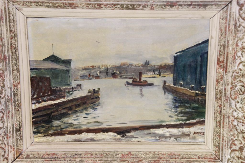 470 Oil on Canvas of Harbor Seascape signed Arpels