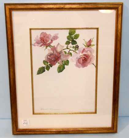 Watercolor of roses signed Perry T. Richie (Canton, MS artist); 15" w., 18" h. Watercolor of roses signed Perry T. Richie (Canton, MS artist); 15" w., 18" h.