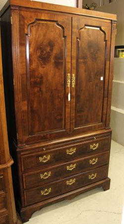 Henredon Aston Court armoire with divided shelves, pull out drawer, dust drawer and three lower drawers.; 42" w., 19 1/2" d., 77 1/2" h. Henredon Aston Court armoire with divided shelves, pull out drawer, dust drawer and three lower drawers.; 42" w., 19 1/2" d., 77 1/2" h.