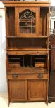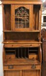 Early 20th century oak roll top desk with cabinet top that has center section with stained glass.; 32" w., 16" d., 74 1/2" h. Early 20th century oak roll top desk with cabinet top that has center section with stained glass.; 32" w., 16" d., 74 1/2" h.