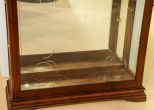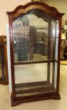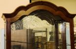 Lighted china cabinet with etched glass front, locking glass side doors and interior shelves.; 40" w., 13" d., 80" h. Lighted china cabinet with etched glass front, locking glass side doors and interior shelves.; 40" w., 13" d., 80" h.