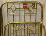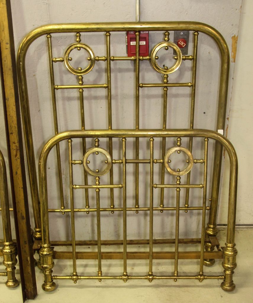 Pair of single brass beds with rails, 50" h. Pair of single brass beds with rails, 50" h.