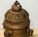 Antique brass tripod tent heater; 21" dia., 29" h. Antique brass tripod tent heater; 21" dia., 29" h.
