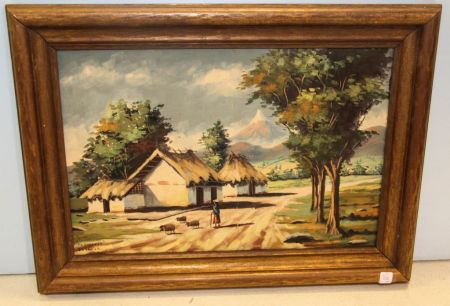 Oil on canvas of Ecuadorian village "El Corazon", signed lower right.; 30" w., 21 1/2" h. Oil on canvas of Ecuadorian village "El Corazon", signed lower right.; 30" w., 21 1/2" h.