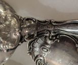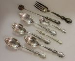 Strasburg by Gorham serving pieces consisting of three large serving spoons, one pierced serving spoon, large pickle fork, candle snuffer, sugar spoon and meat fork.; 8 total pieces Strasburg by Gorham serving pieces consisting of three large serving spoons, one pierced serving spoon, large pickle fork, candle snuffer, sugar spoon and meat fork.; 8 total pieces