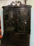 1930's broken pediment Chippendale style fall front desk with latticework on glass doors, fitted interior & ball and claw feet.; 29 1/2" w., 18" d., 75" h. 1930's broken pediment Chippendale style fall front desk with latticework on glass doors, fitted interior & ball and claw feet.; 29 1/2" w., 18" d., 75" h.