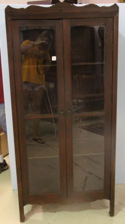 20th century pine pie safe made into china cabinet with divided glass doors.; 30" w., 15 1/2" d., 65" h. 20th century pine pie safe made into china cabinet with divided glass doors.; 30" w., 15 1/2" d., 65" h.