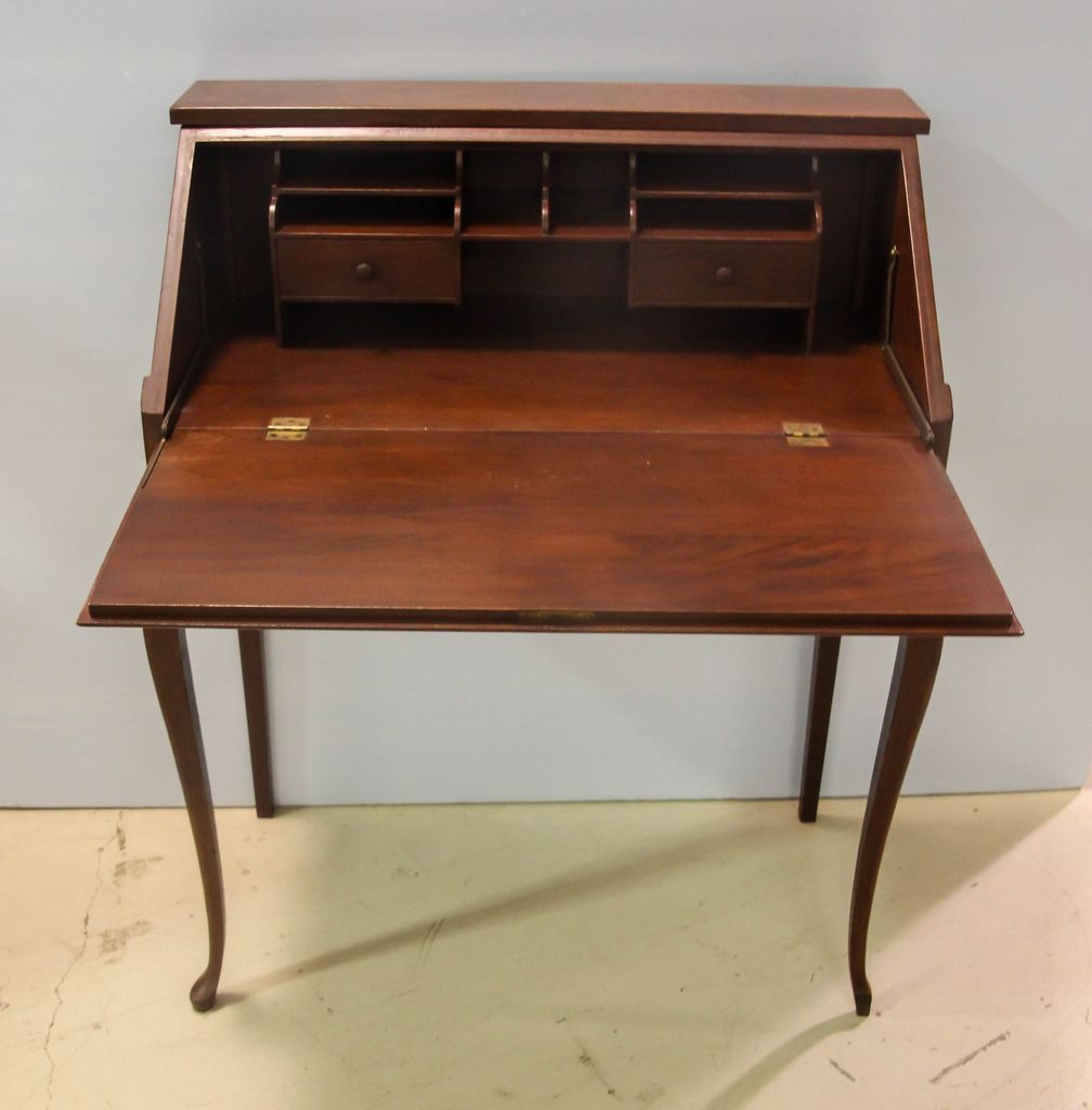 Queen Anne style fall front desk with fitted interior.; 32" w., 16" d., 40" h. Queen Anne style fall front desk with fitted interior.; 32" w., 16" d., 40" h.