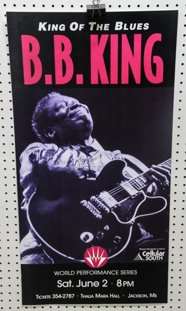 Signed B.B. King poster, probably from 2001 performance.; 18" w., 35" h. Signed B.B. King poster, probably from 2001 performance.; 18" w., 35" h.