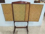 Needlepoint tapestry, walnut, slide out tapestry side panels, has wear on finish and tapestry, 52"h., 24"w. Needlepoint tapestry, walnut, slide out tapestry side panels, has wear on finish and tapestry, 52"h., 24"w.