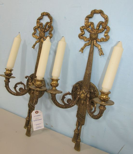 220 Pair of Brass Ribbon Ornate Wall Sconces