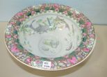 Made in China, hand painted with scenes and floral patterns, has a slight tilt, 8"h., 15"dia. Made in China, hand painted with scenes and floral patterns, has a slight tilt, 8"h., 15"dia.