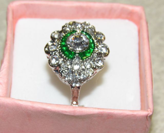 Surround by green stones, size 7. Surround by green stones, size 7.