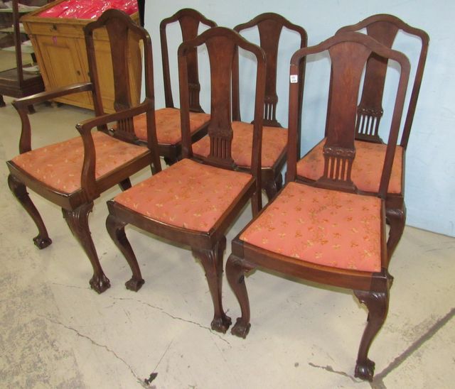 Five sides, one arm, mahogany, removable fabric seat, some cleaning, 40"h Five sides, one arm, mahogany, removable fabric seat, some cleaning, 40"h