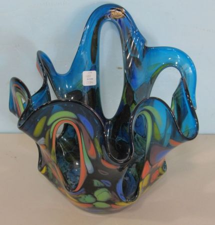 Hand blown art glass vase, multi colored, made in Poland, 11"h., 14"w. Hand blown art glass vase, multi colored, made in Poland, 11"h., 14"w.