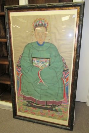 On paper, bamboo style frame, plastic front, 70"h., 39"w. On paper, bamboo style frame, plastic front, 70"h., 39"w.