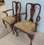Modern Queen Anne style dining arm chairs, matching cushions, 38"h. Modern Queen Anne style dining arm chairs, matching cushions, 38"h.