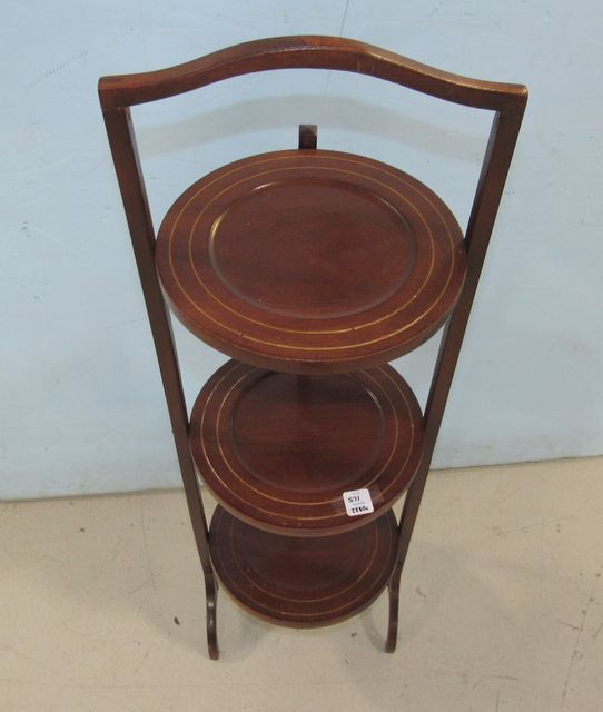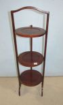 Three tier folding stand mahogany, 35"h., 11"w. Three tier folding stand mahogany, 35"h., 11"w.