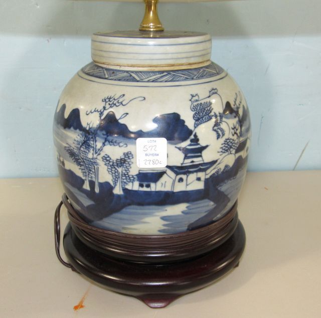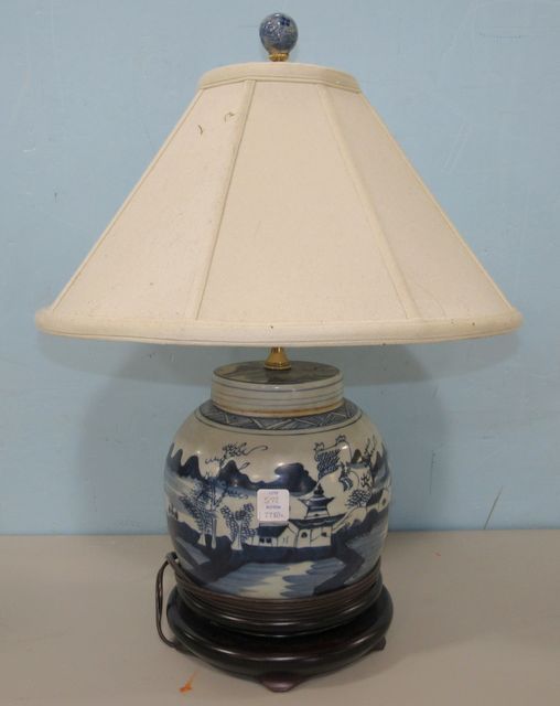 Wood base, blue and white depicting Temple and landscape, made in china, modern decor, 23"h. Wood base, blue and white depicting Temple and landscape, made in china, modern decor, 23"h.