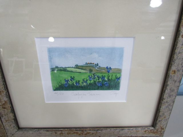 Modern framed, artist signed and numbered, framed with glass, 10"h., 12"w. Modern framed, artist signed and numbered, framed with glass, 10"h., 12"w.