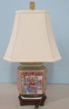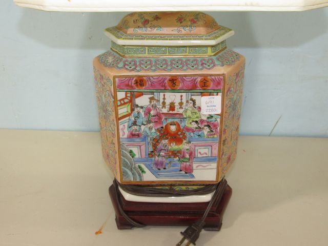 Wood base, hand painted with gathering scene, 27"h. Wood base, hand painted with gathering scene, 27"h.