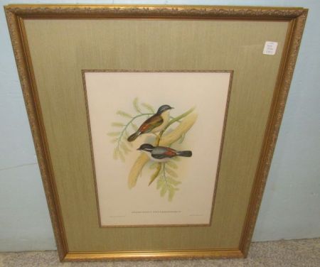 By J. Gould, framed, glass front, 27"h., 22"w. By J. Gould, framed, glass front, 27"h., 22"w.